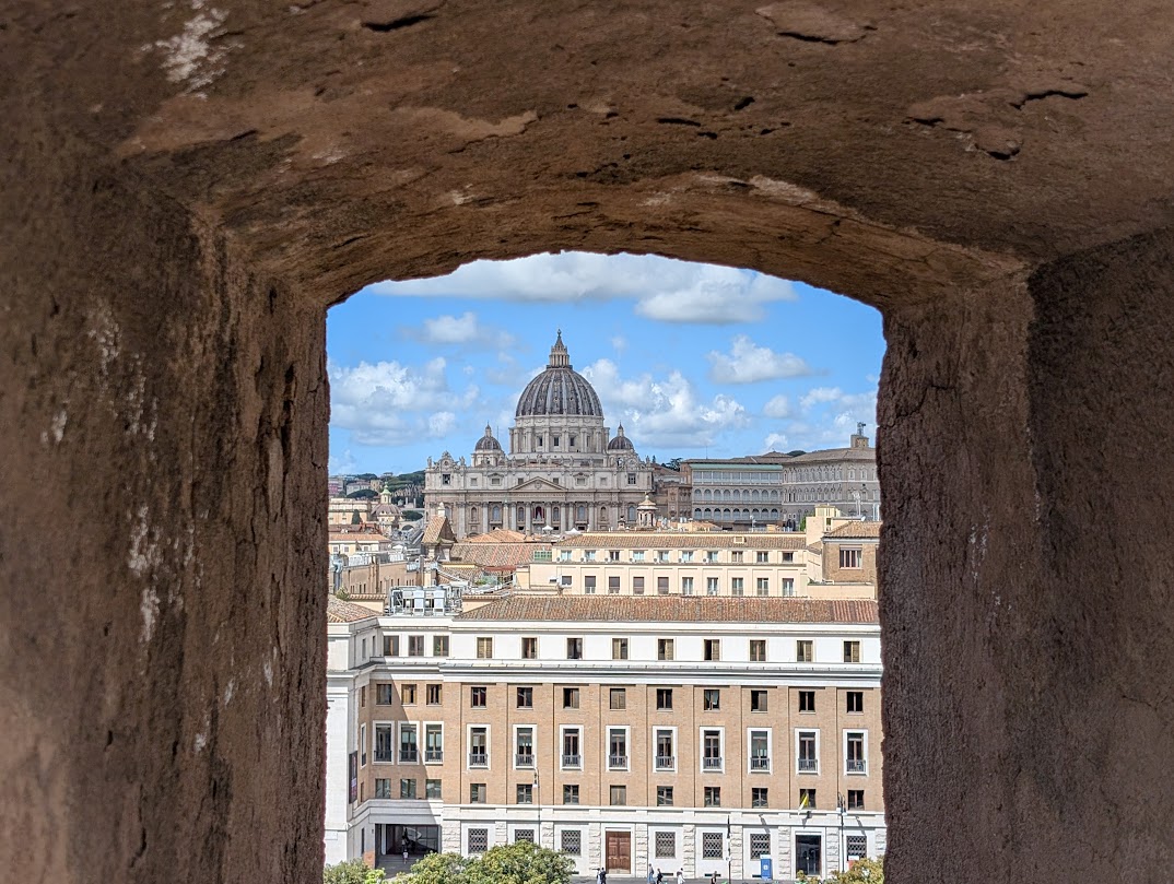 Sometimes, events occur which completely disrupts a traveller’s plan. In 2019, just a month before our European vacation which was to start in Paris, the devastating fire occurred at the Norte Dame Cathedral. For our Italian trip, the plan-altering event was the death of Pope Francis on April 21st, 2025, about two weeks before our arrival in Rome. Although we would barely miss the funeral, we would be there for the enclave to elect a new pope. This meant no visit to the Sistine Chapel. Months before, while planning our Vatican day, we had decided to skip the Vatican Museums. The Vatican Museum is a completely different entrance and experience than simply visiting St. Peter’s Basilica and St Peter’s Square. For one, there is a cost for the Vatican Museums and most of the people doing the Vatican Museums are part of a tour group which then also includes the Sistine Chapel. After a while, I started to identify my favorite Italy travel bloggers. Many of my favorite bloggers recommended skipping the Vatican Museums. The museums are normally very crowded, and many people describe the experience as being herded like cattle through an endless array of treasures that the Church has collected over the years. By skipping the Museums, I figured this would allow us to spend more time around the Square and in St Peter’s Basilica.