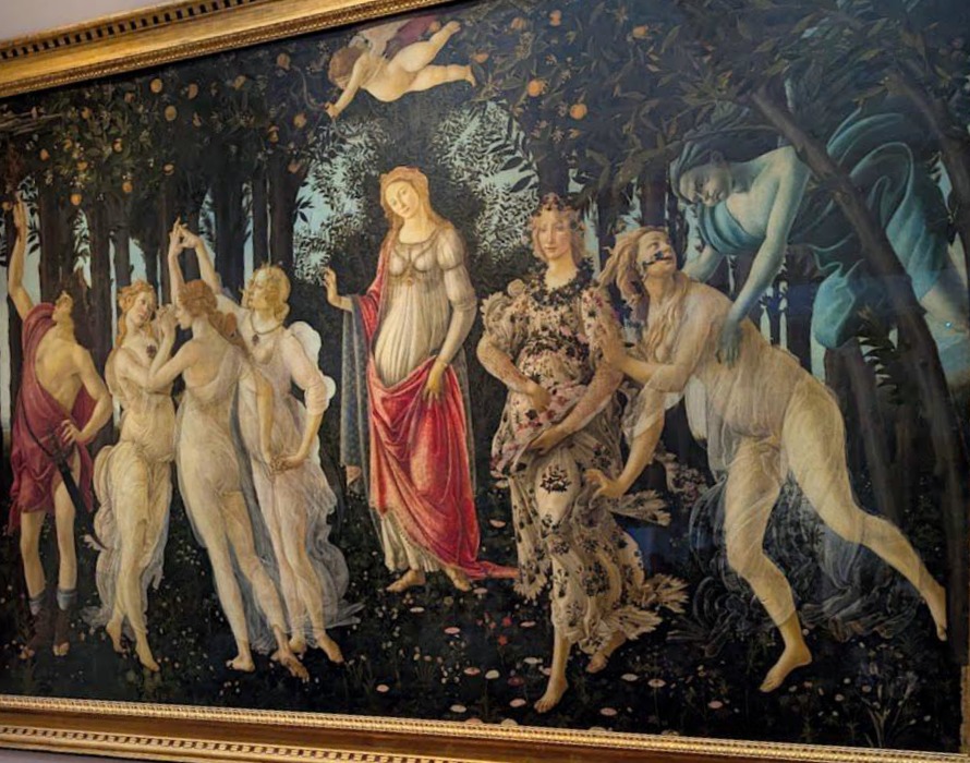 Fun Fact: I. One aspect of the painting is a depiction of the progress of the spring season. (reading from right to left) The wind of early spring blows on the land and brings forth growth and flowers, presided over by Venus, goddess of April. At the left is Mercury, the god of the month of May in an early Roman calendar. He is chasing away the last clouds before summer.